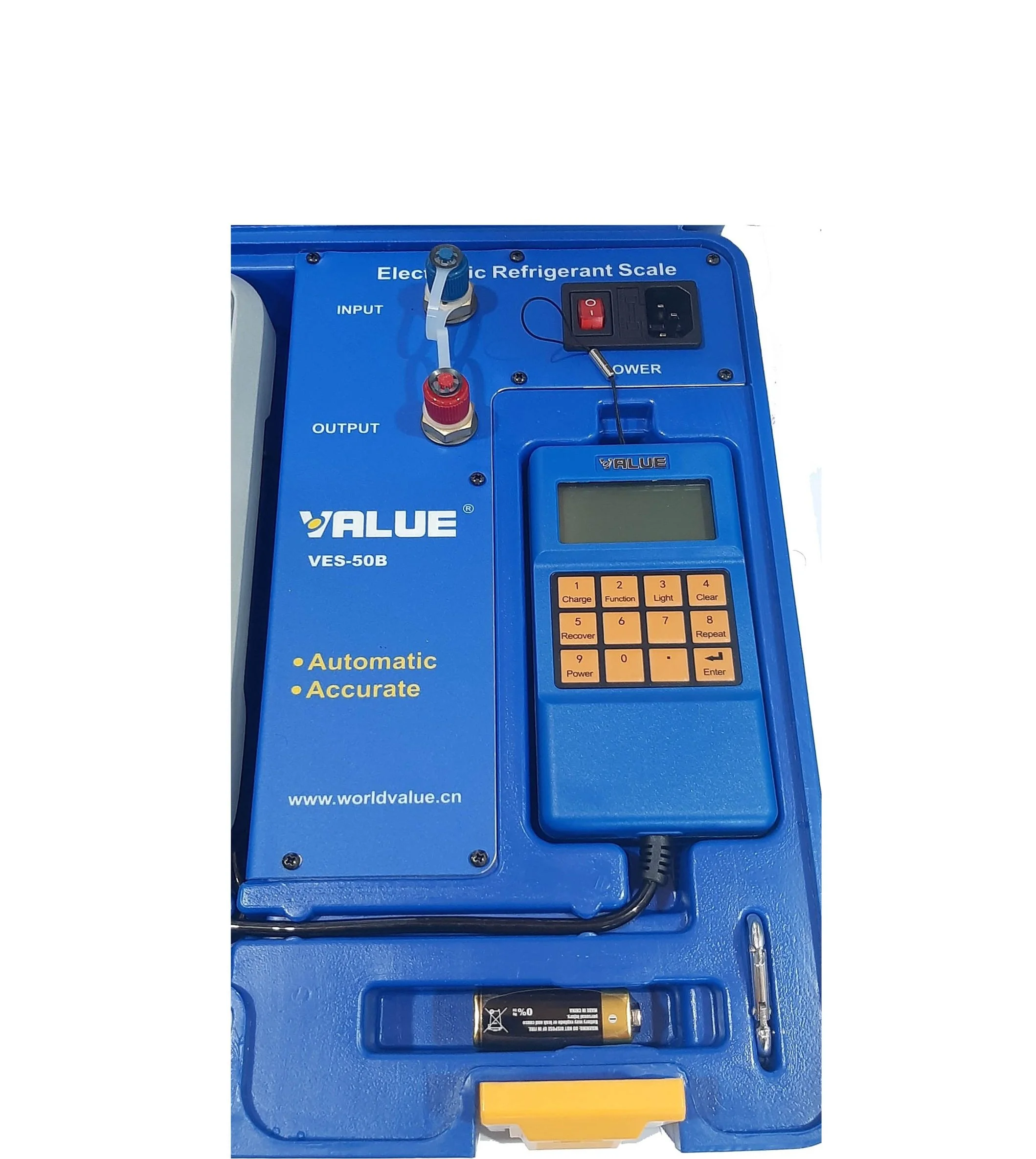ترازو شارژ گاز ولیو مدل VES50B همراه با قطع کن یکی از ابزارهای اساسی و با کیفیت در صنعت تهویه مطبوع و تبرید است. این ترازو با دقت بالا و قابلیت قطع خودکار، انتخابی ایدهآل برای تکنسینها و مهندسان حرفهای است که به دنبال دقت و کارایی در شارژ گاز هستند.